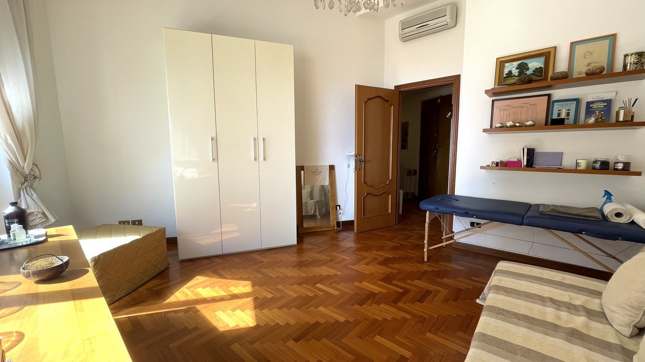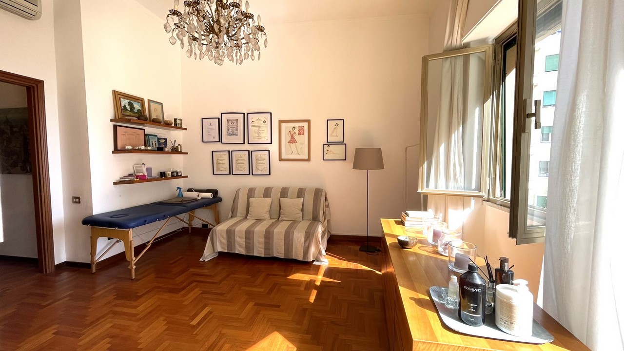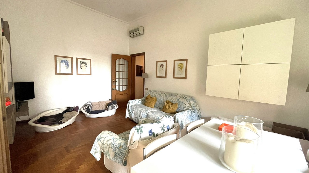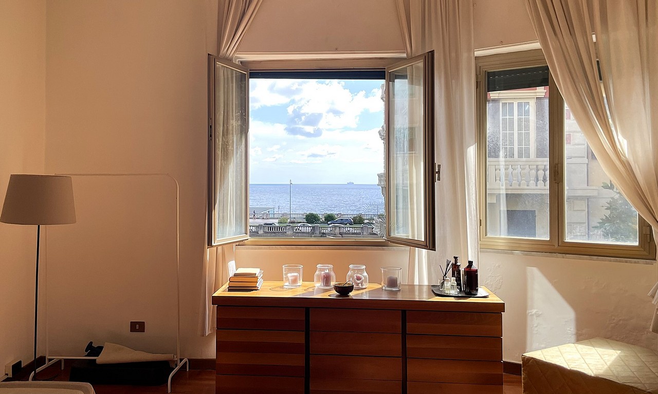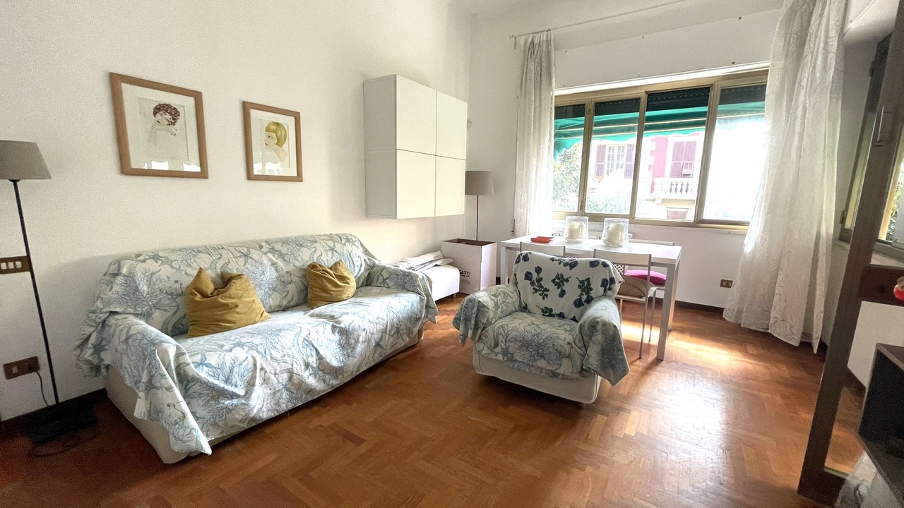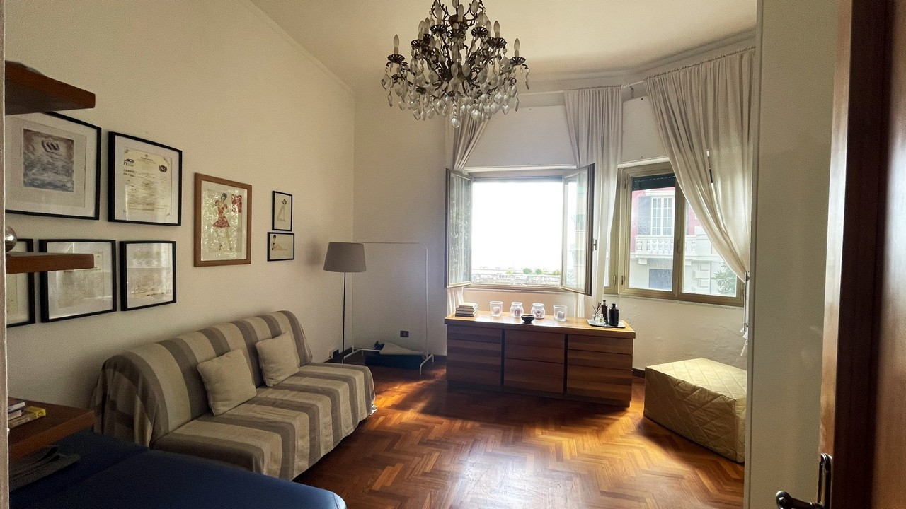 Posto nella parte finale della via in stabile metà anni 30 a pochi passi dal mare e da Corso Italia, l’appartamento gode di affaccio prevalente sud, in posizione rialzata luminosa e tranquilla con gradevole vista mare, nel verde e sul circondario.