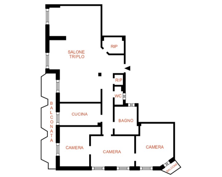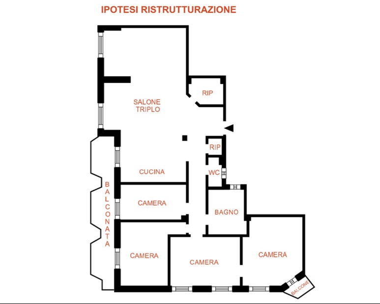 STURLA Europa 9 vani biservizi (gransalone triplo con caminetto) + lunga balconata + balconcino.